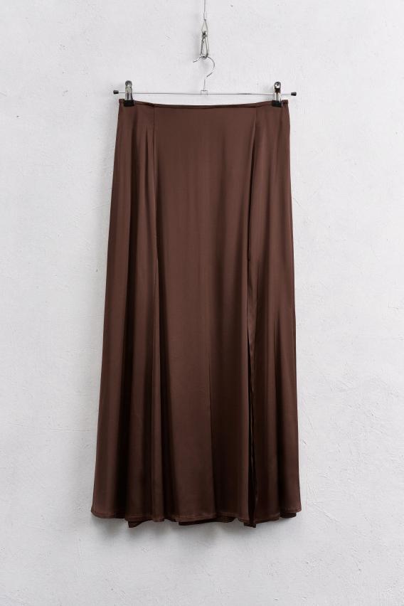 La falda ACOSTA de nuestra maravillosa casa de firma está confeccionada con buen gusto pensando en una mujer con estilo. No es una falda cualquiera, ya que nosotros trabajamos con un maravilloso satén y esta falda tiene mucho vuelo y una favorecedora abertura delantera.
