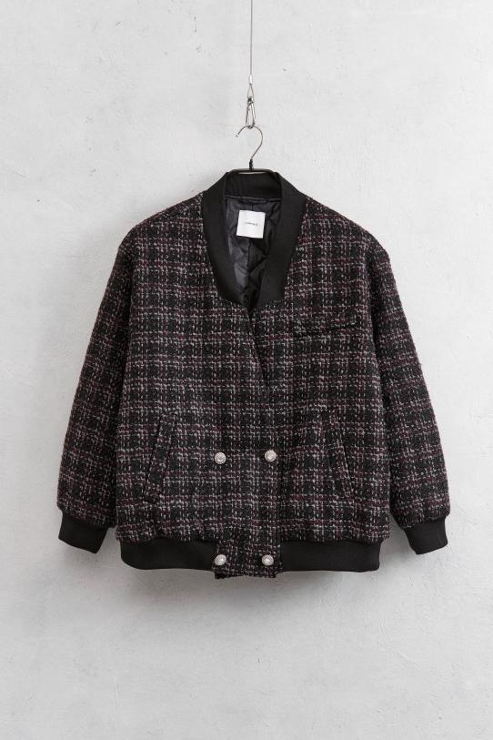 La bomber ÁGATA de nuestra maravillosa casa de firma está confeccionada con buen gusto pensando en una mujer con estilo. Confeccionado en un tejido de tweed con tejido acolchado y corte oversize.