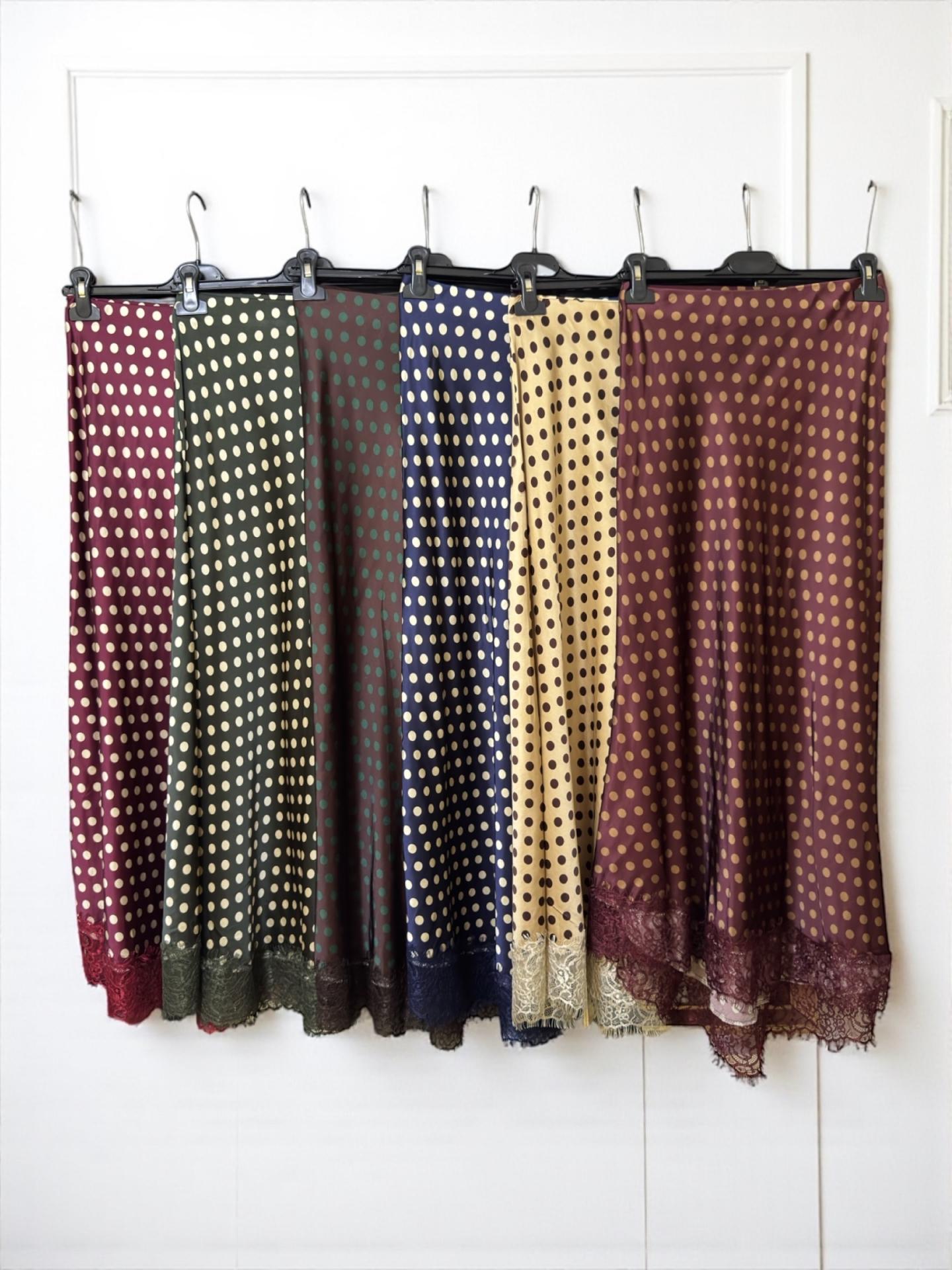 La falda AZALEA es una preciosidad en cuanto al tejido satinado y el detalle del encaje. Lleva cintura elástica pudiéndose adaptar a varios cuerpos..
