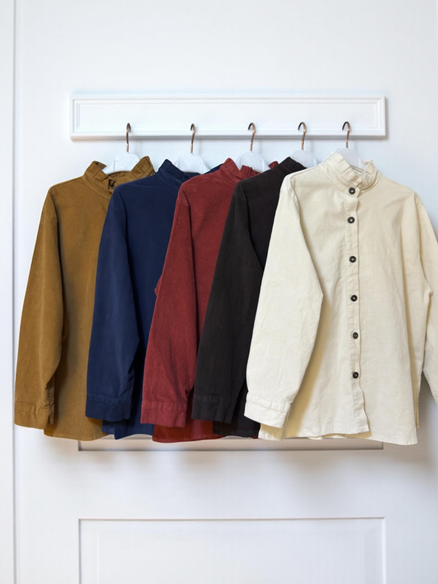 La camisa ONERA viene en tejido de micro pana con cuello plisado. El corte es largo y amplio. Te va a dar mucho juego, porque puedes combinarlo dentro de las partes de abajo o por fuera, dándole un aire más desenfadado..