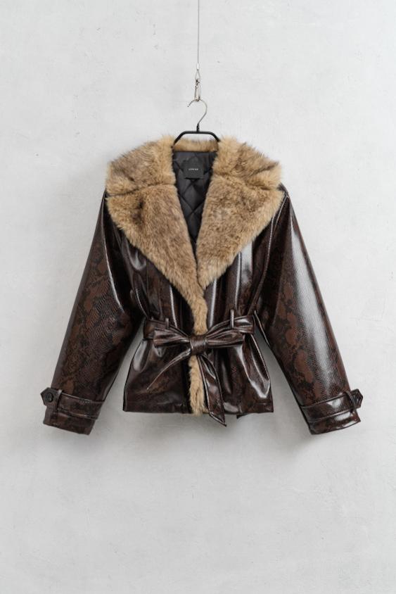 La chaqueta PAULETTE de nuestra maravillosa casa no es un abrigo cualquiera. Nuestro modelo viene confeccionado en corte perfecto completamente forrado y un diseño con solapas en pelo y lazada para entallar en cintura. Lleva hombreras