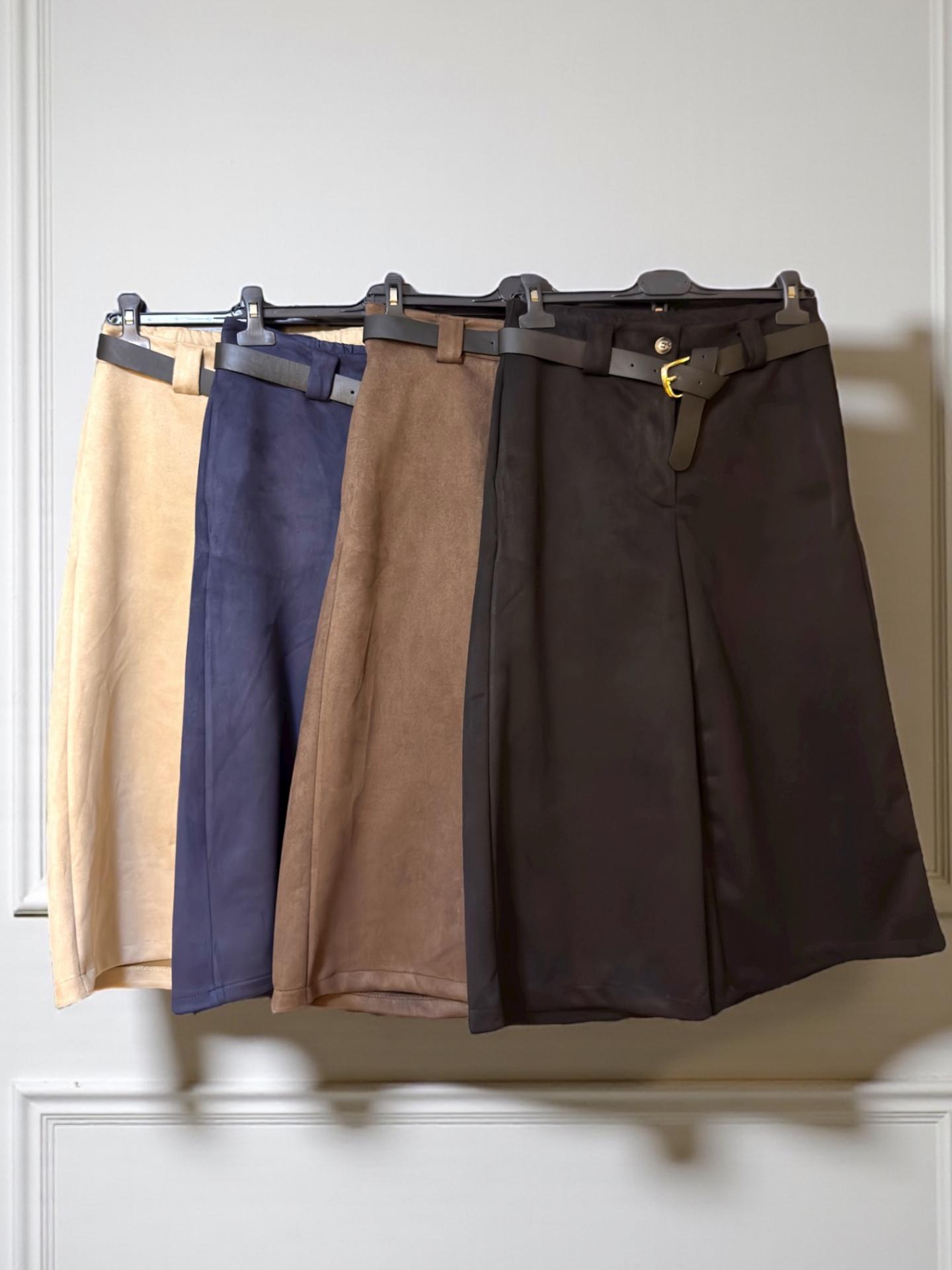 La Bermuda AYURE viene en un corte muy favorecedor recto con tejido sintético de ante. Cierre de botón y cremallera.
