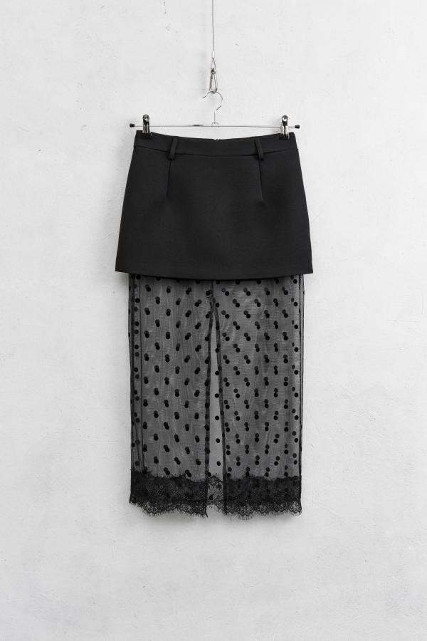 La falda PONT pertenece a nuestra maravillosa casa de firma. Viene confeccionado en doble tejido con transparencias.