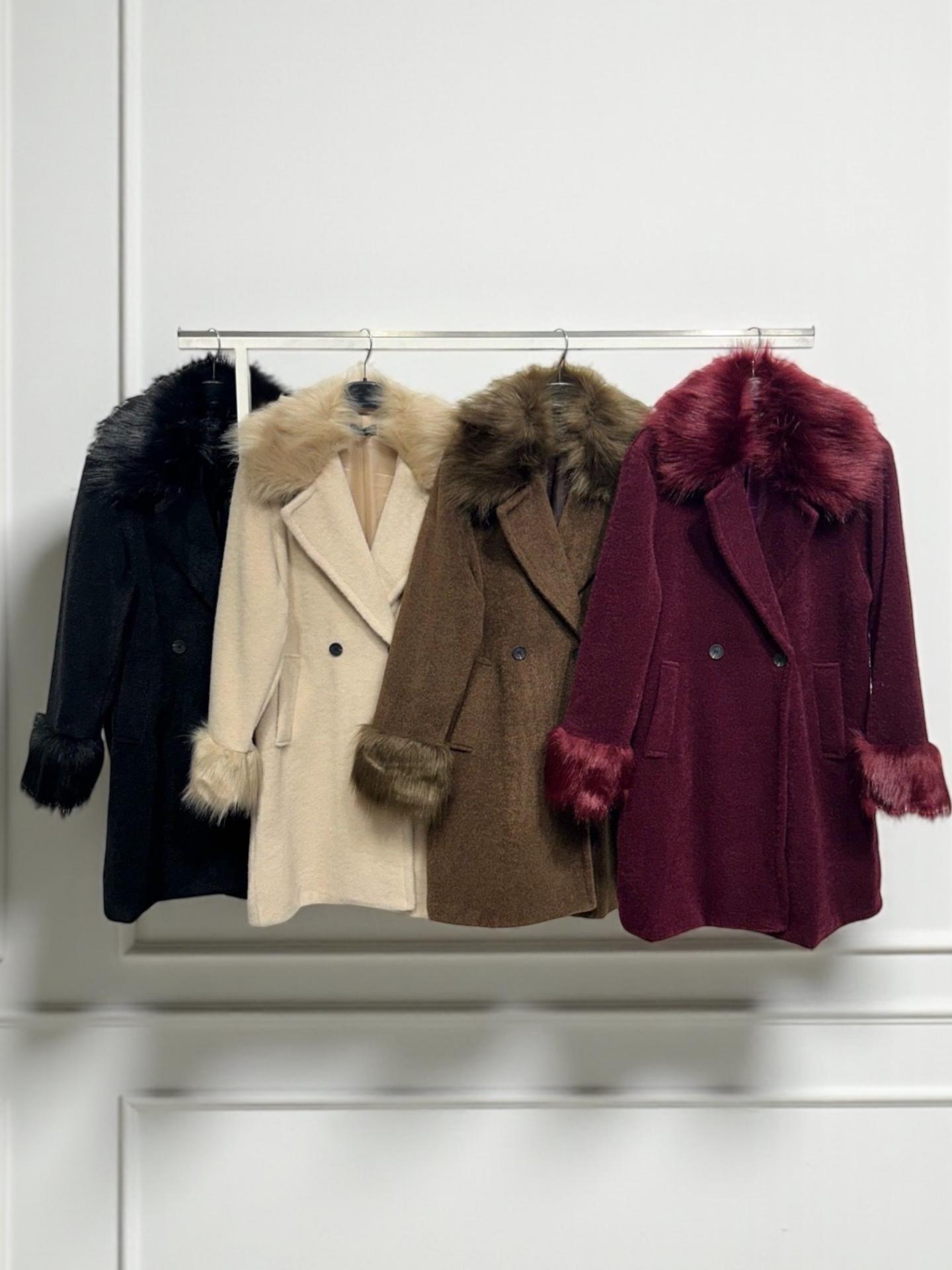 El abrigo LOUVRE de corte amplio y con pelo en cuello y puños es ideal para tu día a día.