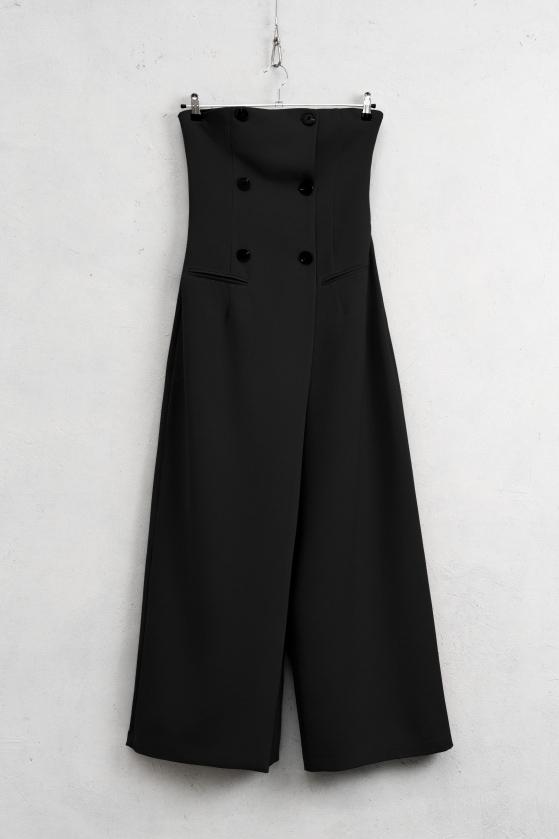 El mono ALEXANDRA pertenece a nuestra maravillosa casa de firma. Confeccionada con un gusto exquisito efecto palazzo y palabra de honor y con detalle de botones.