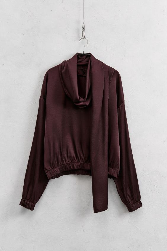La camisa ELOY pertenece a nuestra maravillosa casa de firma. Confeccionado en tejido de satén con una calidad superior. Su corte es amplio con lazada efecto bufanda y el bajo es elástico.