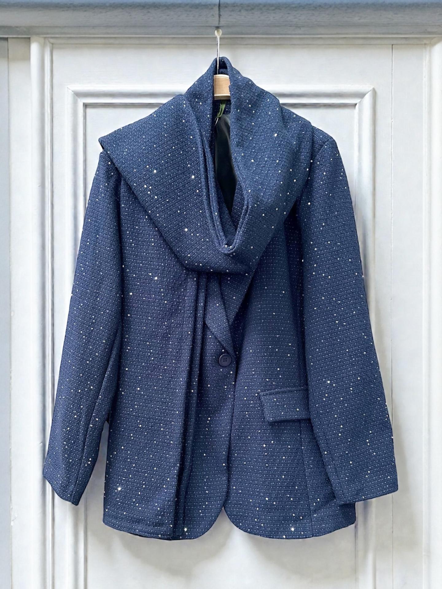 La chaqueta PARIS viene en corte amplio con un botón y detalle de bufanda.