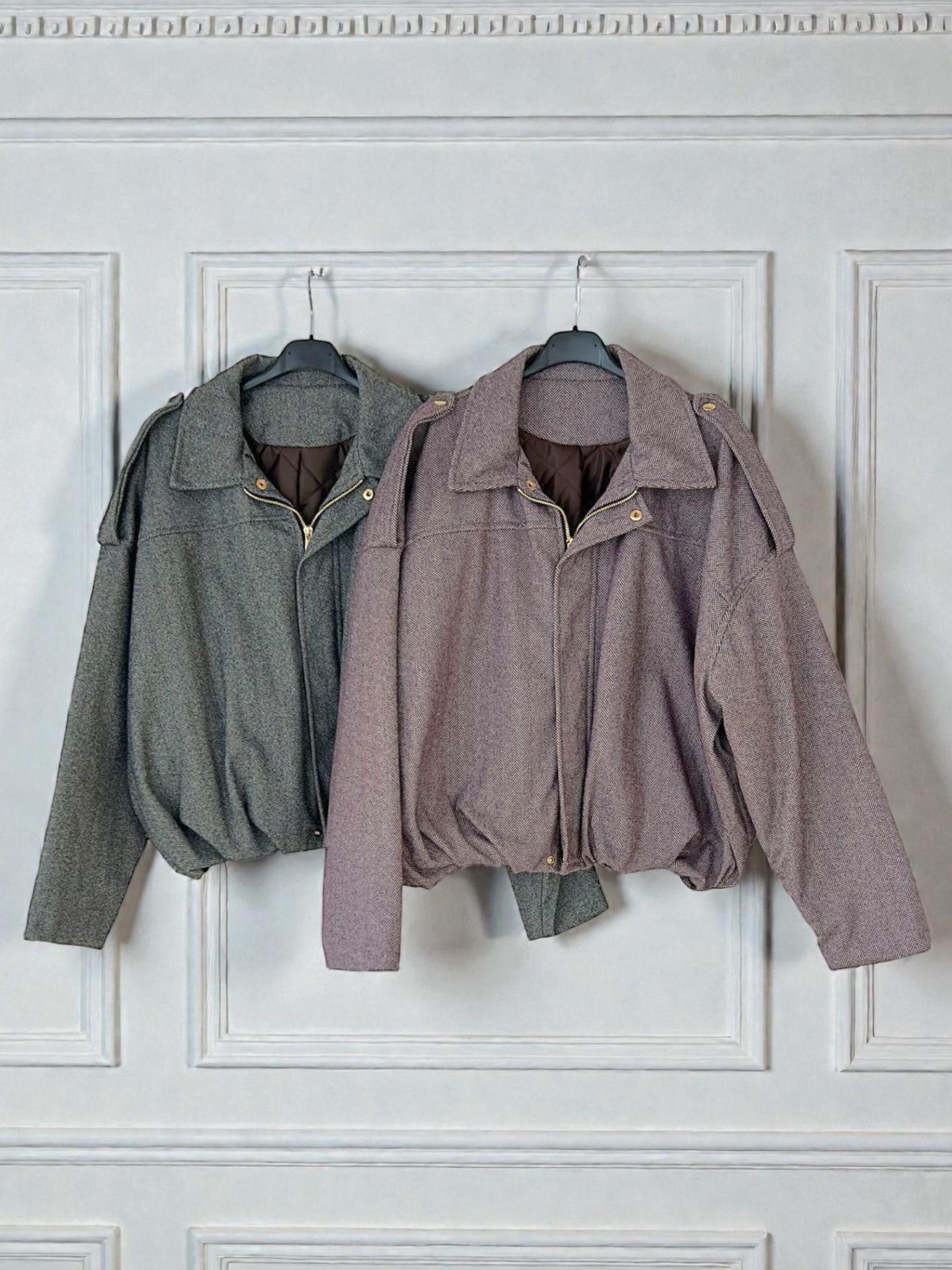 La bomber CLARA viene en corte amplio con tejido abrigado y acolchado en su interior.