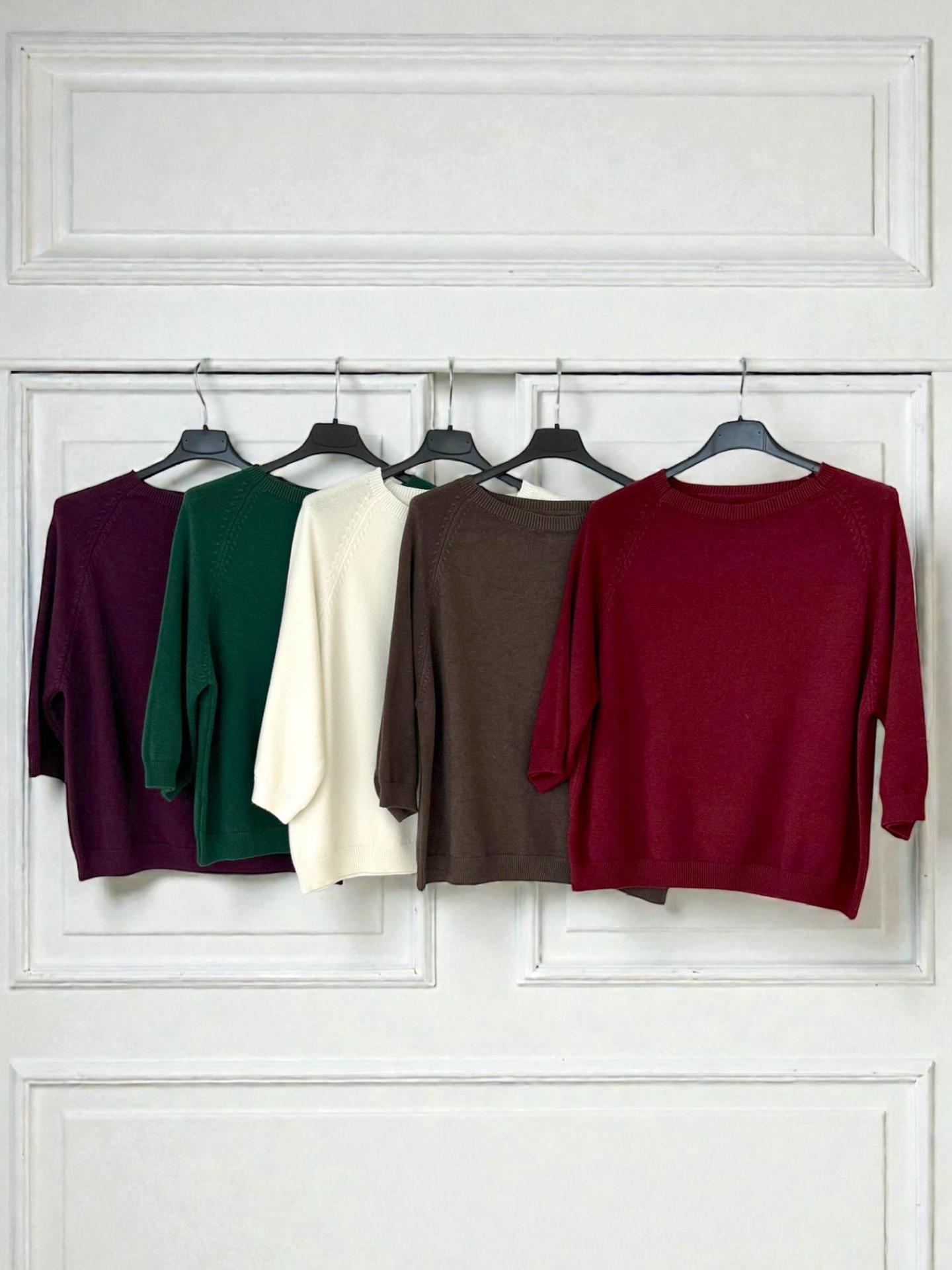 El suéter es un básico con un maravilloso tejido con manga francesa