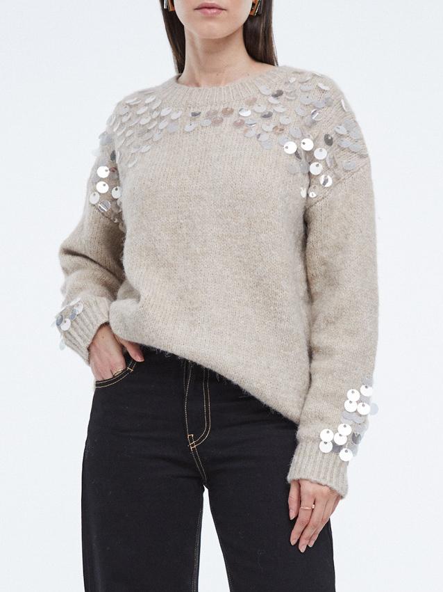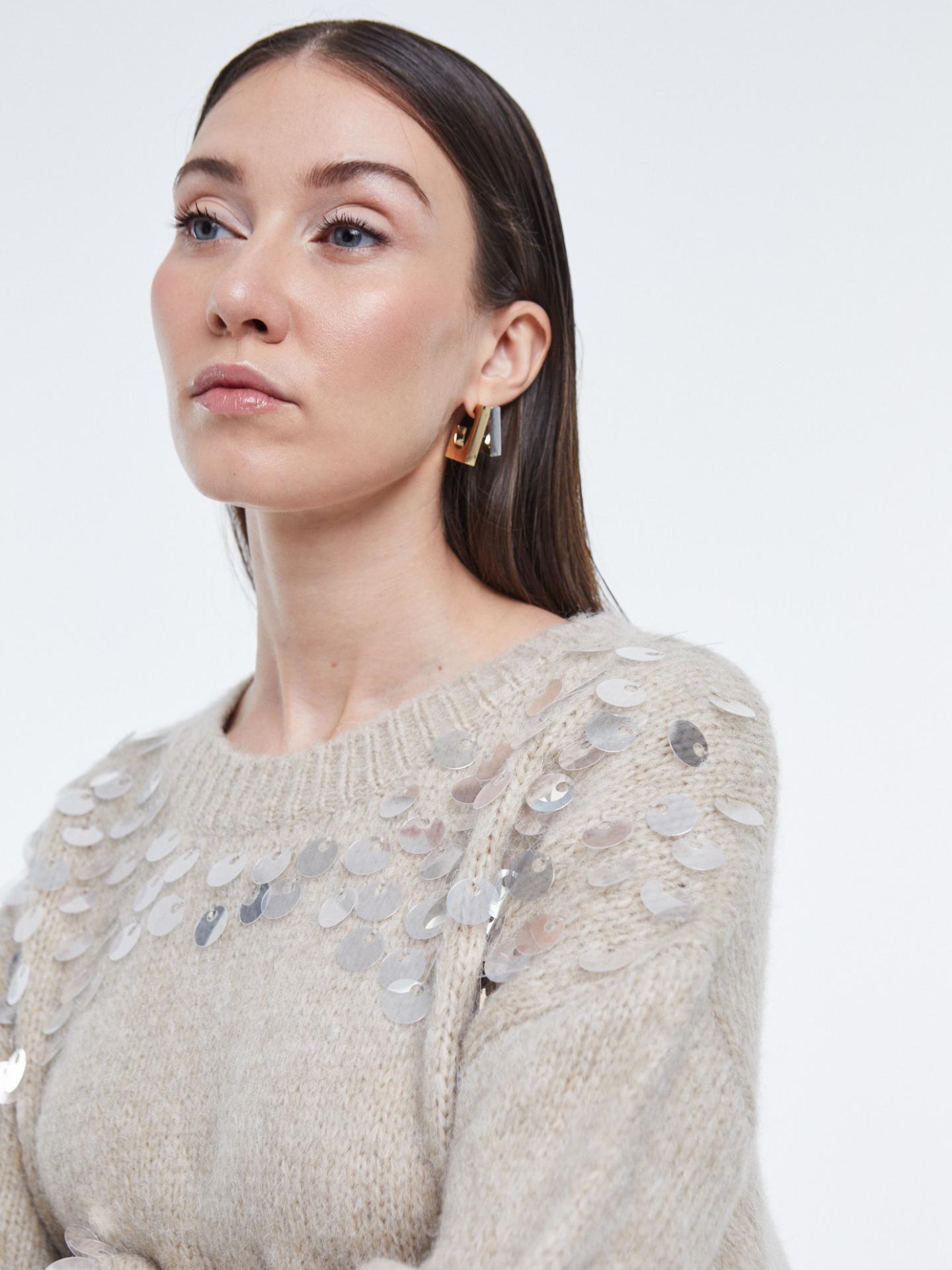 El jersey LUMP es un jersey de corte suelto y largo con detalle de maxi lentejuelas. Es un jersey bastante abrigado.