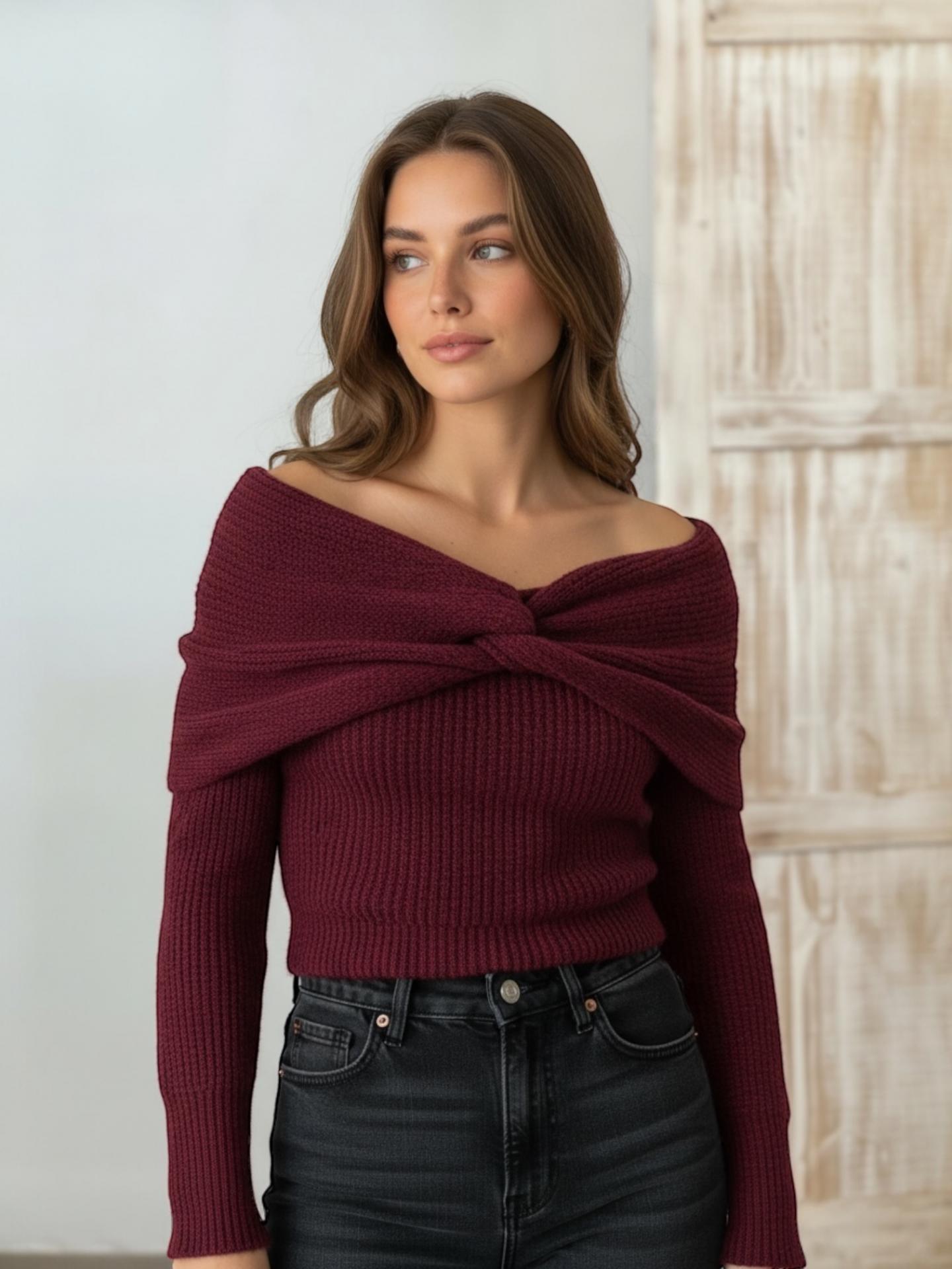 El jersey ALPACA con hombros al aire y un agradable tejido con lana de alpaca es estilo asegurado.