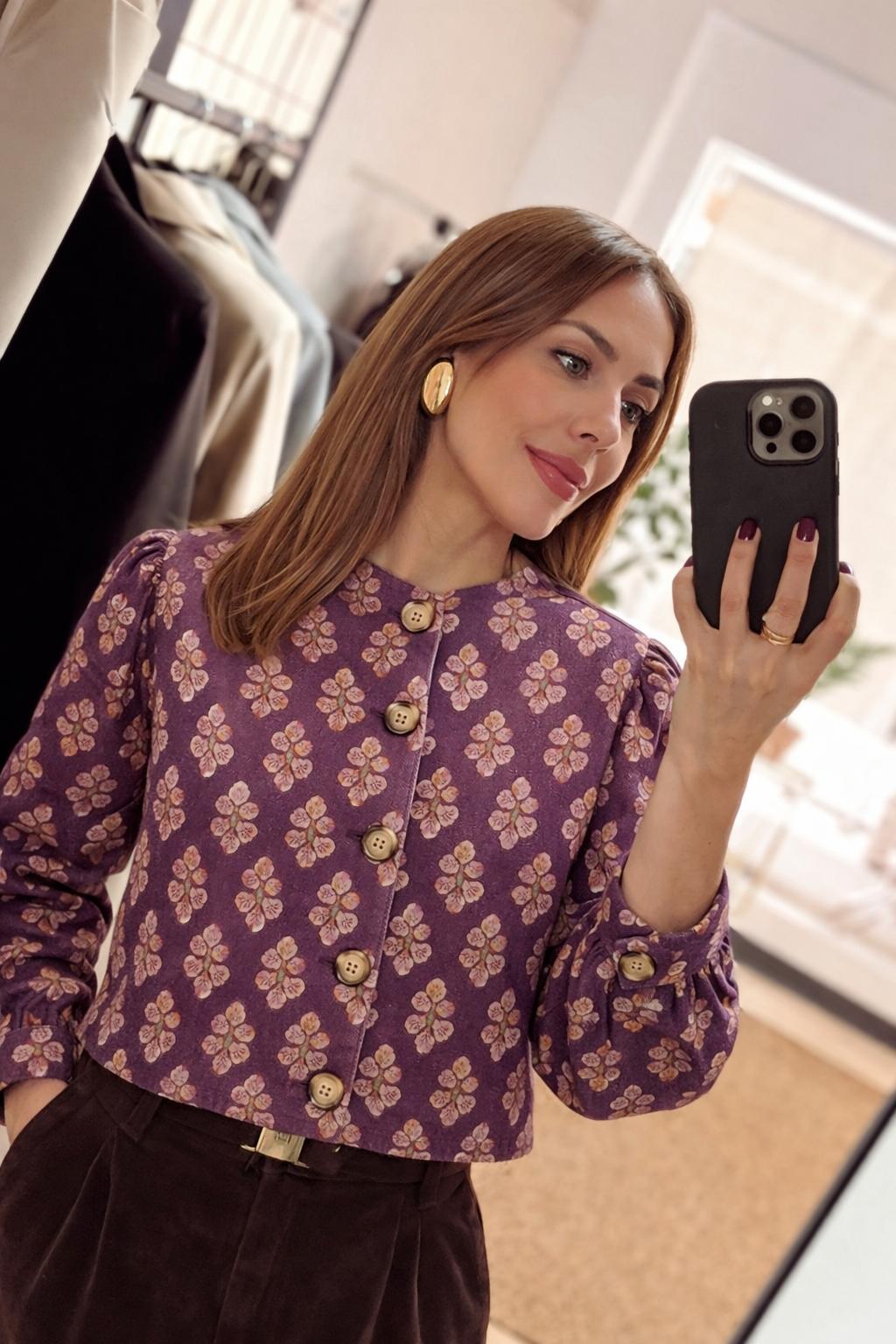 La chaqueta OCLOT tiene un corte perfecto con mangas ligeramente abullonadas y cuerpo abotonado.