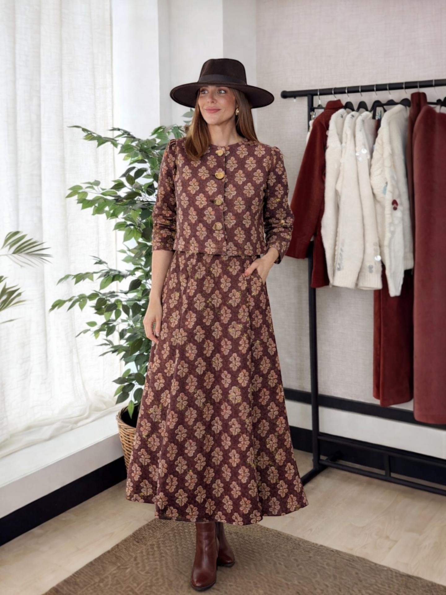 La falda OCLOT viene en corte midi súper favorecedor con corte en A. Combínalo con la nueva chaqueta a juego porque te va a encantar como queda el conjunto.