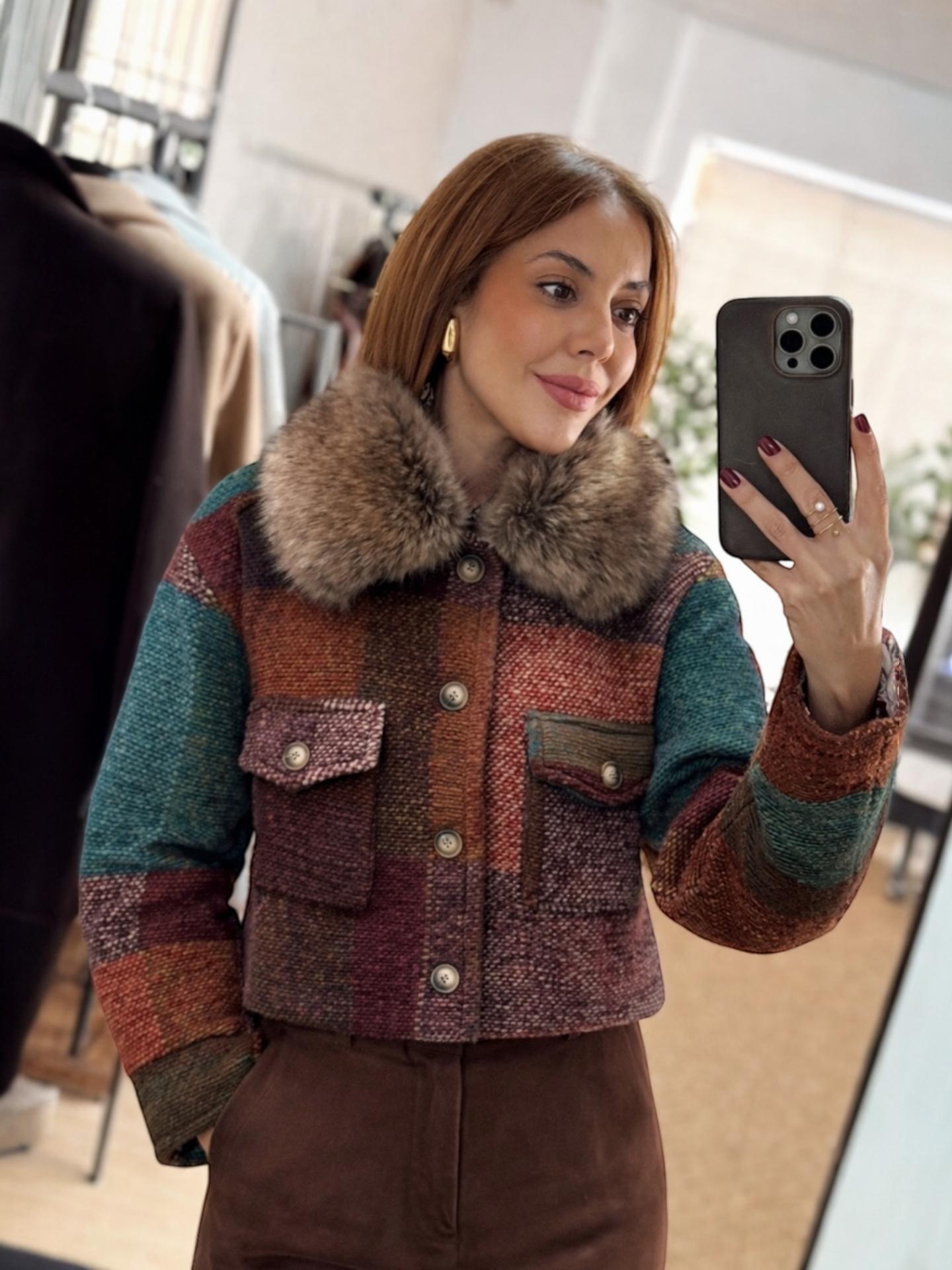El abrigo DUOM es una joya de lo que abriga y gustoso que es. Tiene grandes solapas de pelo y cuerpo abotonado.
