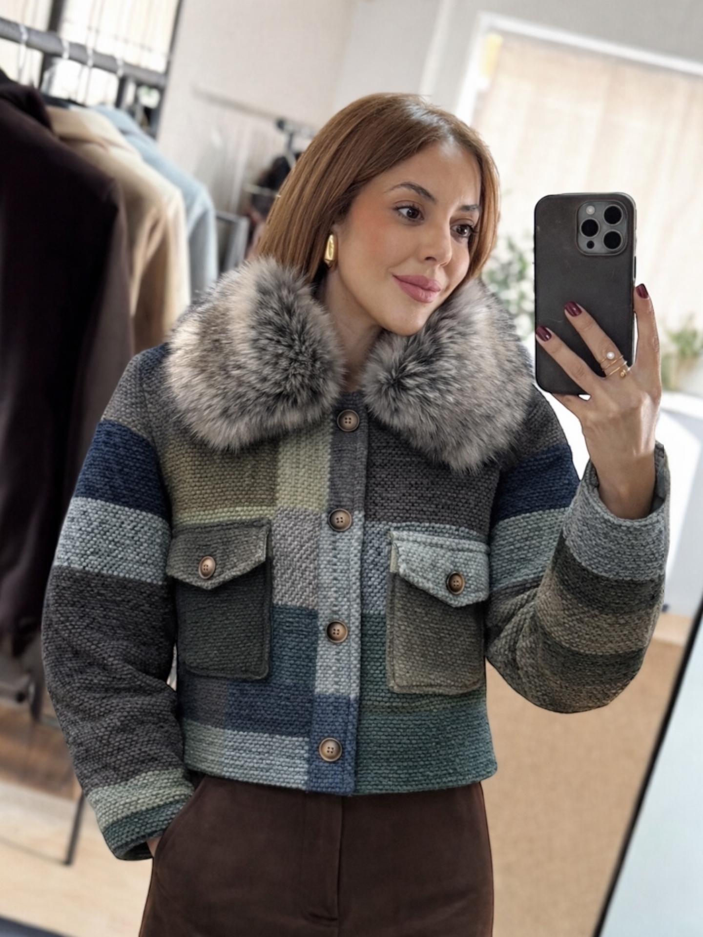 El abrigo DUOM es una joya de lo que abriga y gustoso que es. Tiene grandes solapas de pelo y cuerpo abotonado.