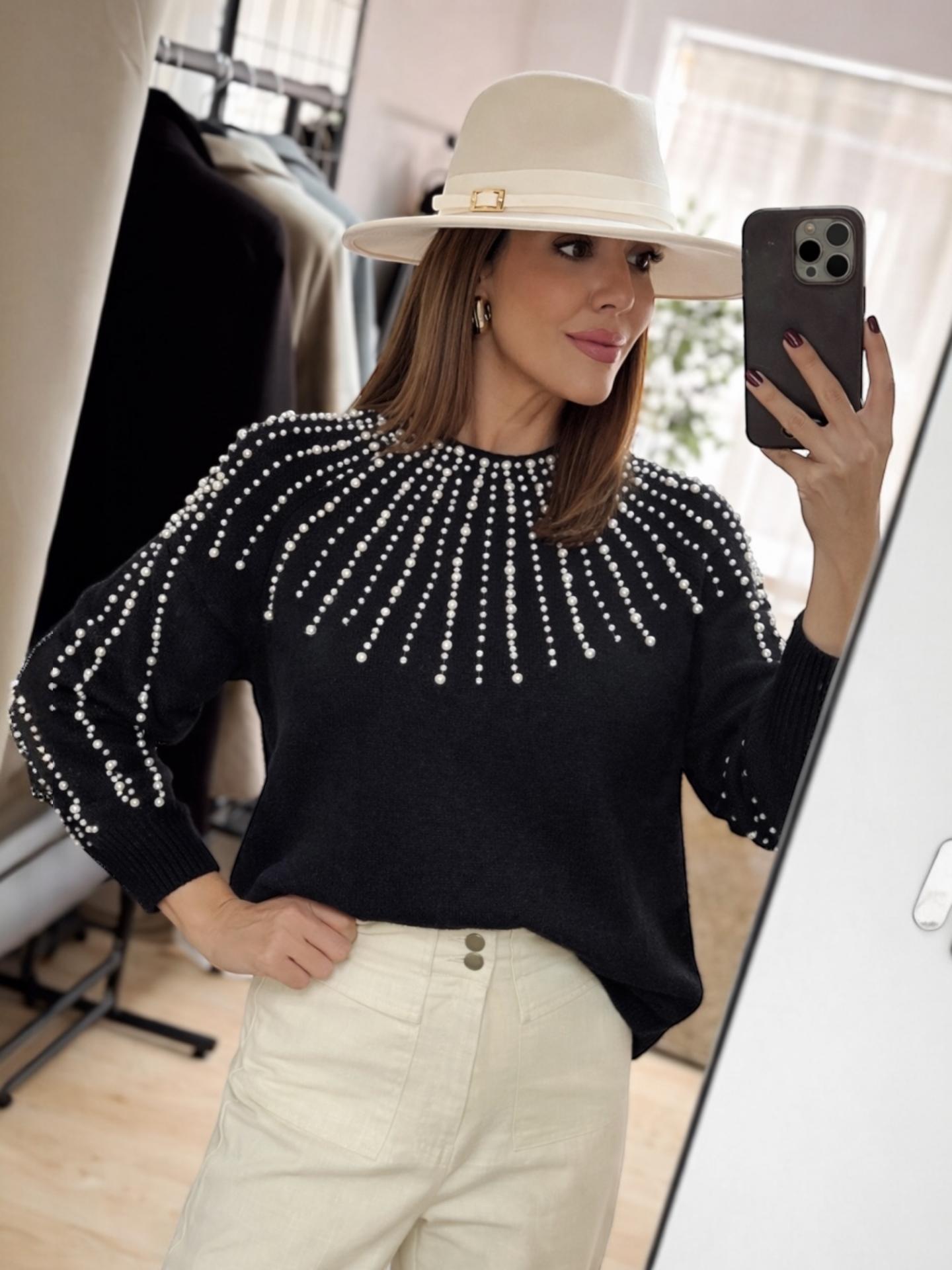 El jersey ROMANTIC es un jersey de corte suelto y con detalle de perlas.