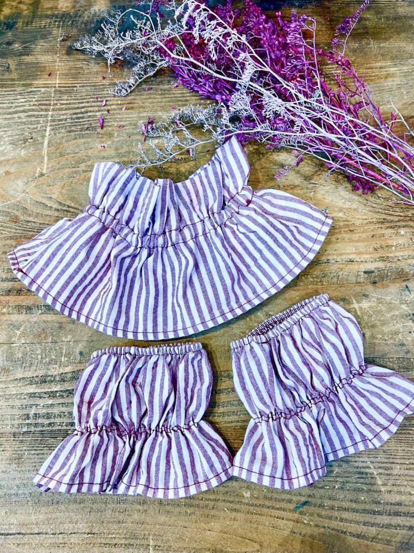 Conjunto Cuello y Puños Rayas Malva