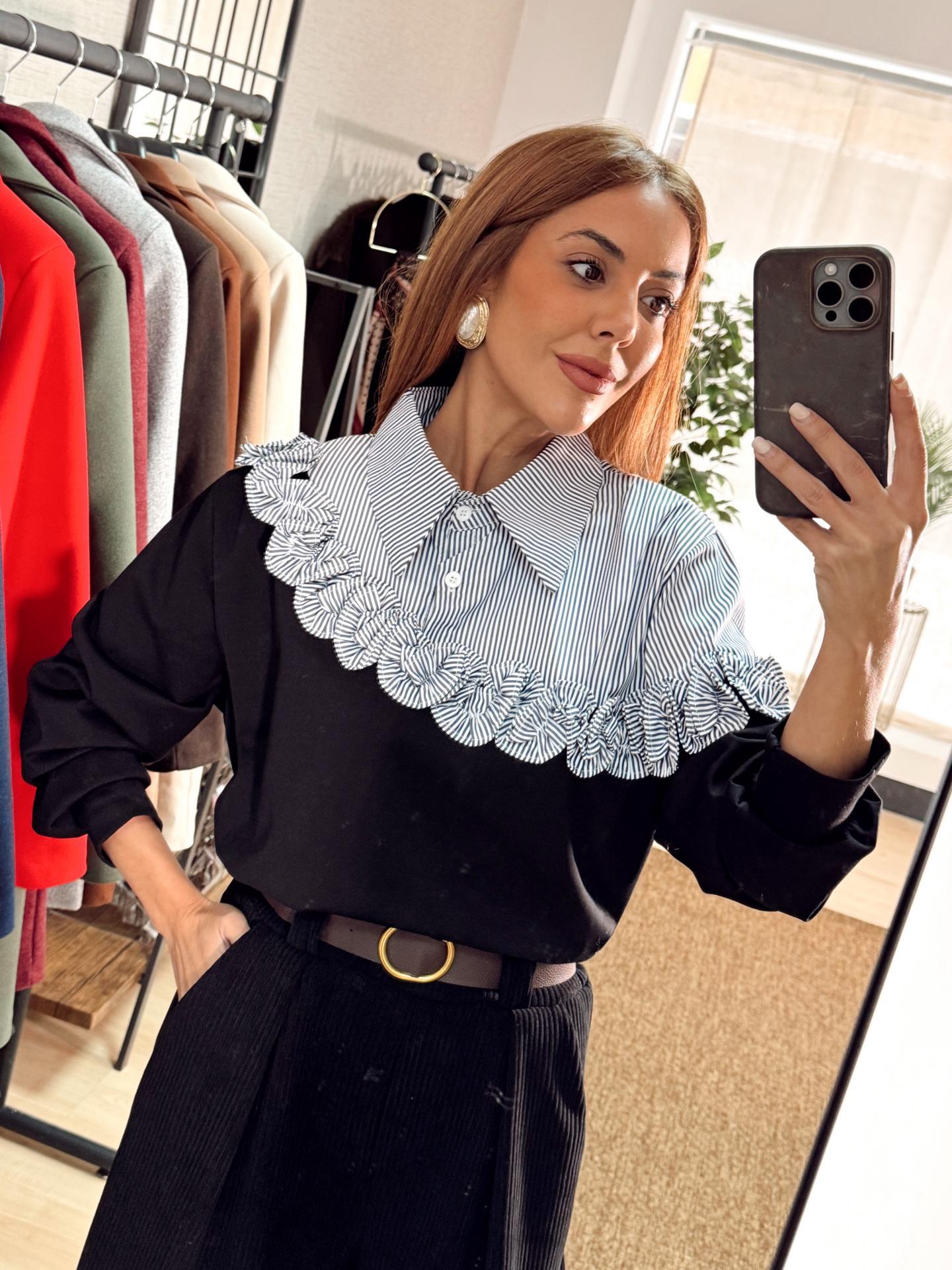 La sudadera APRIOL es una necesidad desbloqueada con un tejido ligero que no se arruga y detalle de tejido de camisa en la parte superior con cuello y botones. La parte de las flores le hace una prenda muy especial..