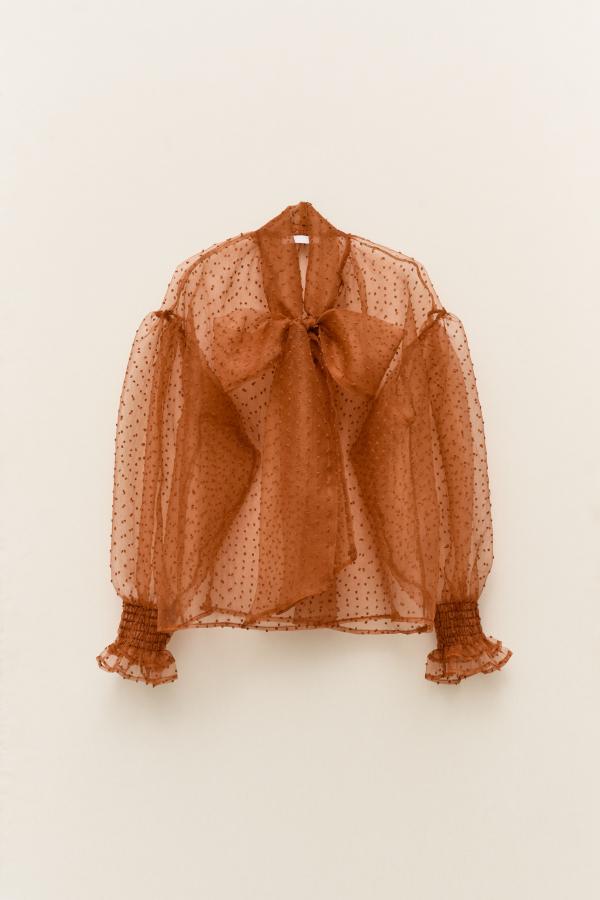 La camisa ANIBAL de nuestra maravillosa casa de firma está confeccionada en tela de popelin con manga abullonada y lazo.