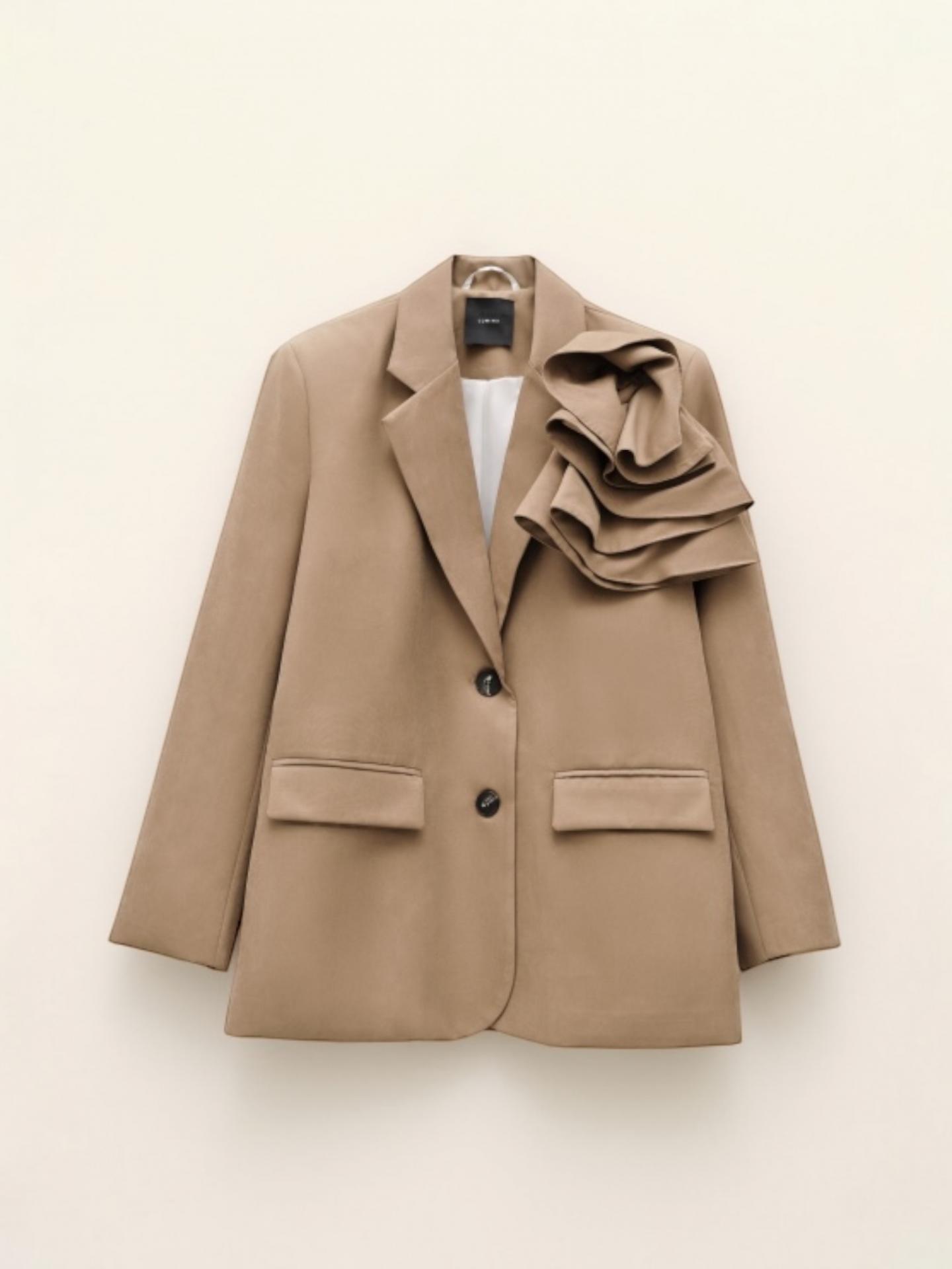 La chaqueta ONORA de nuestra maravillosa casa de firma viene en un espectacular tejido. Corte amplio y con detalle de lazo. Está completamente forrado y con hombreras
