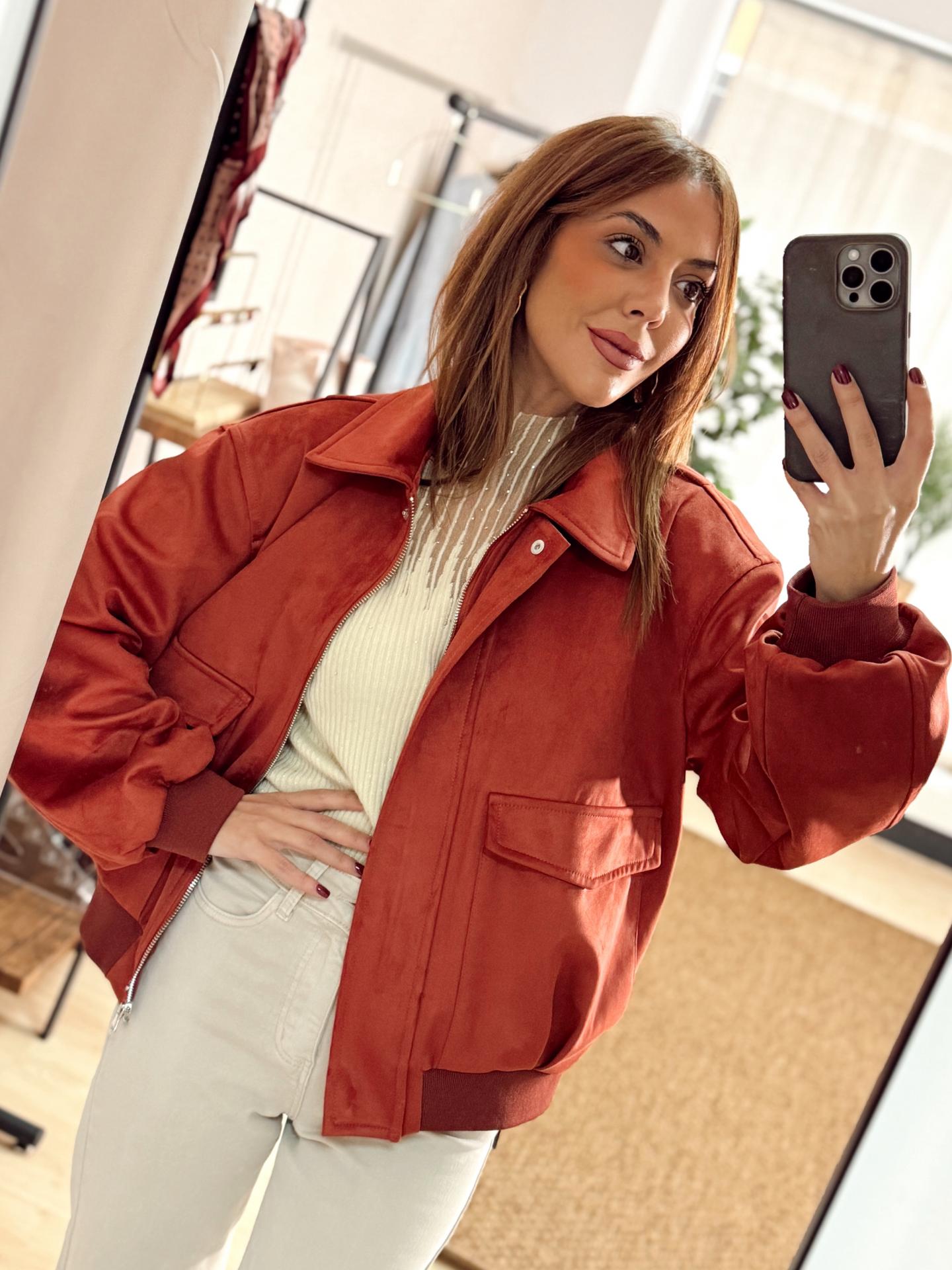 La bomber TRUEGA de nuestra maravillosa casa de firma está confeccionada con buen gusto pensando en una mujer con estilo. Confeccionado en un tejido de ante sintético con tejido semi acolchado y corte perfecto.