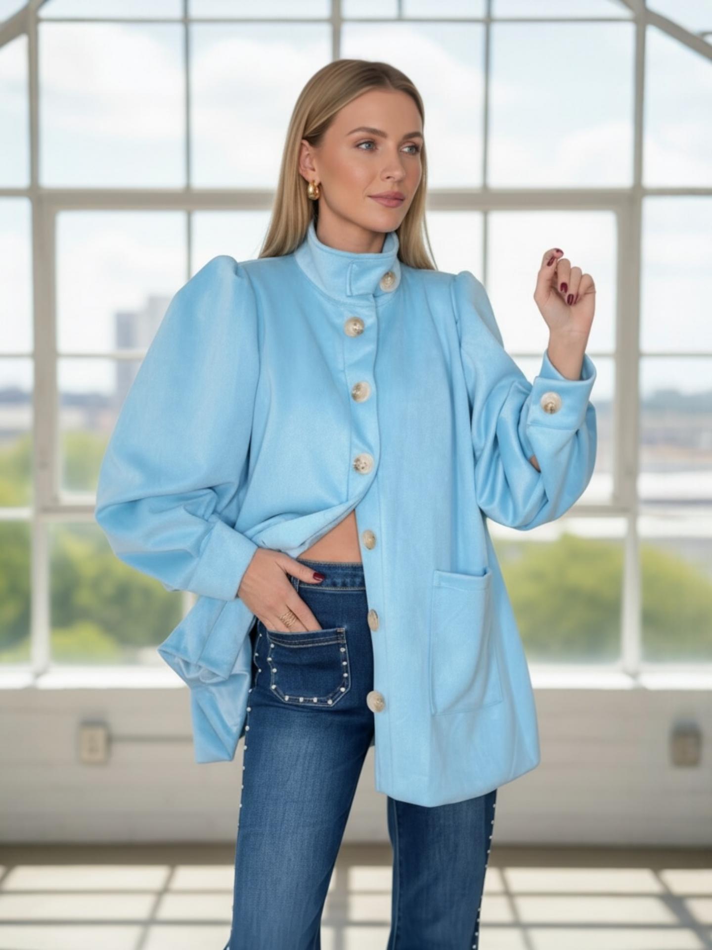 La cazadora VANESSA con tejido de ante sintético de corte recto y mangas abullonadas. Es simplemente, espectacular..