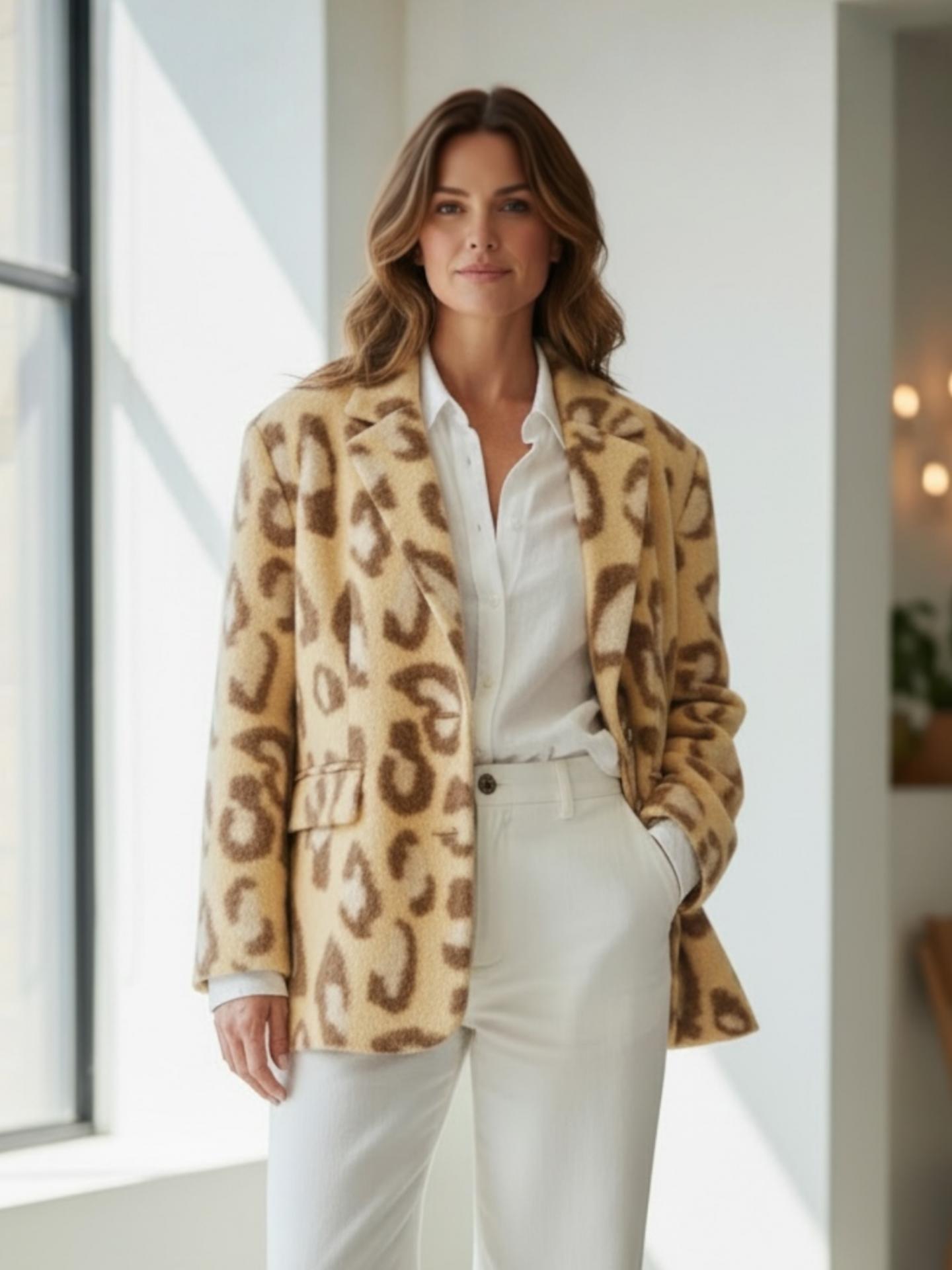 El abrigo DANIELA de nuestra maravillosa casa es una preciosidad que viene en corte Oversize con lana. El estampado no puede ser más ideal.