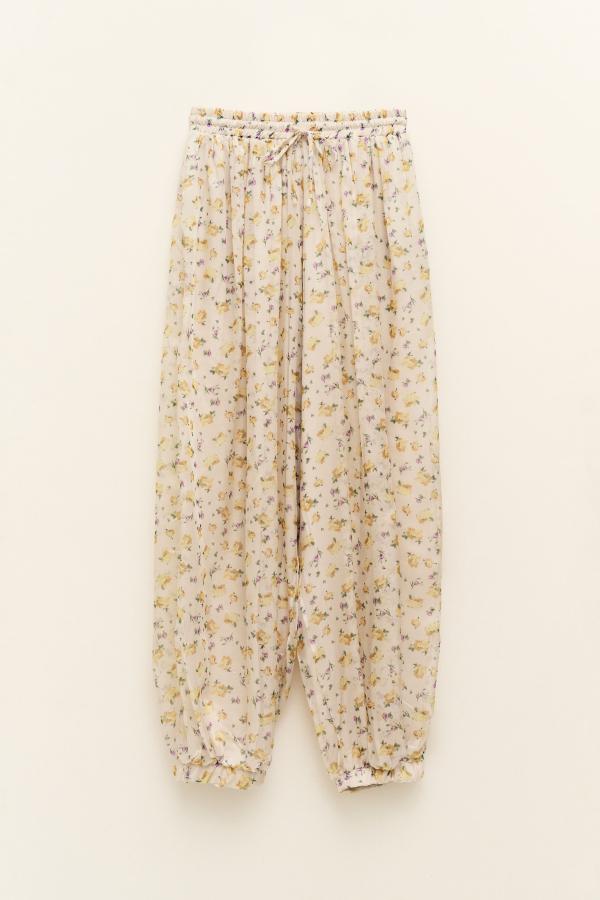 El Pantalón KAIA Pertenece a nuestra maravillosa casa de la firma Lumina. Viene en corte muy bombacho. Cintura elástica. Estampado floral. Forro de viscosa.