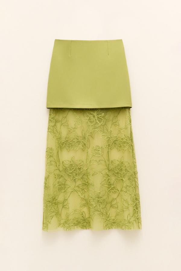 La falda GABANNA pertenece a nuestra maravillosa casa de firma Lumina. Viene confeccionado en tejido de encaje con estampado de flores.
