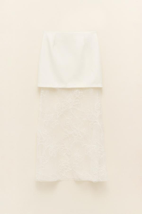 La falda GABANNA pertenece a nuestra maravillosa casa de firma Lumina. Viene confeccionado en tejido de encaje con estampado de flores.