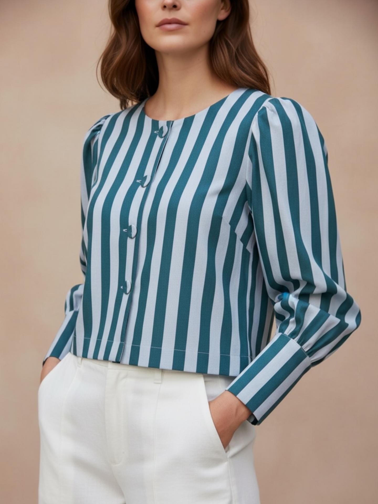 La chaqueta PLAST viene en tejido de denim sedoso con botones forrados y mangas globo.