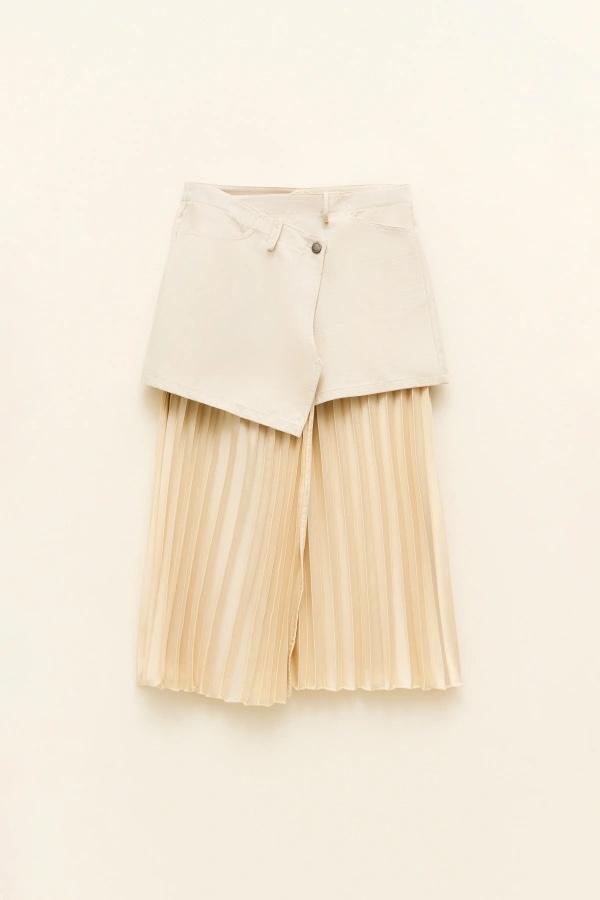 La falda VOILL pertenece a nuestra maravillosa casa de firma Lumina. Viene confeccionado en doble tejido combinando el denim con el tejido satinado plisado con una calidad superior. Talla muy amplio. Recomendamos coger una talla menor.