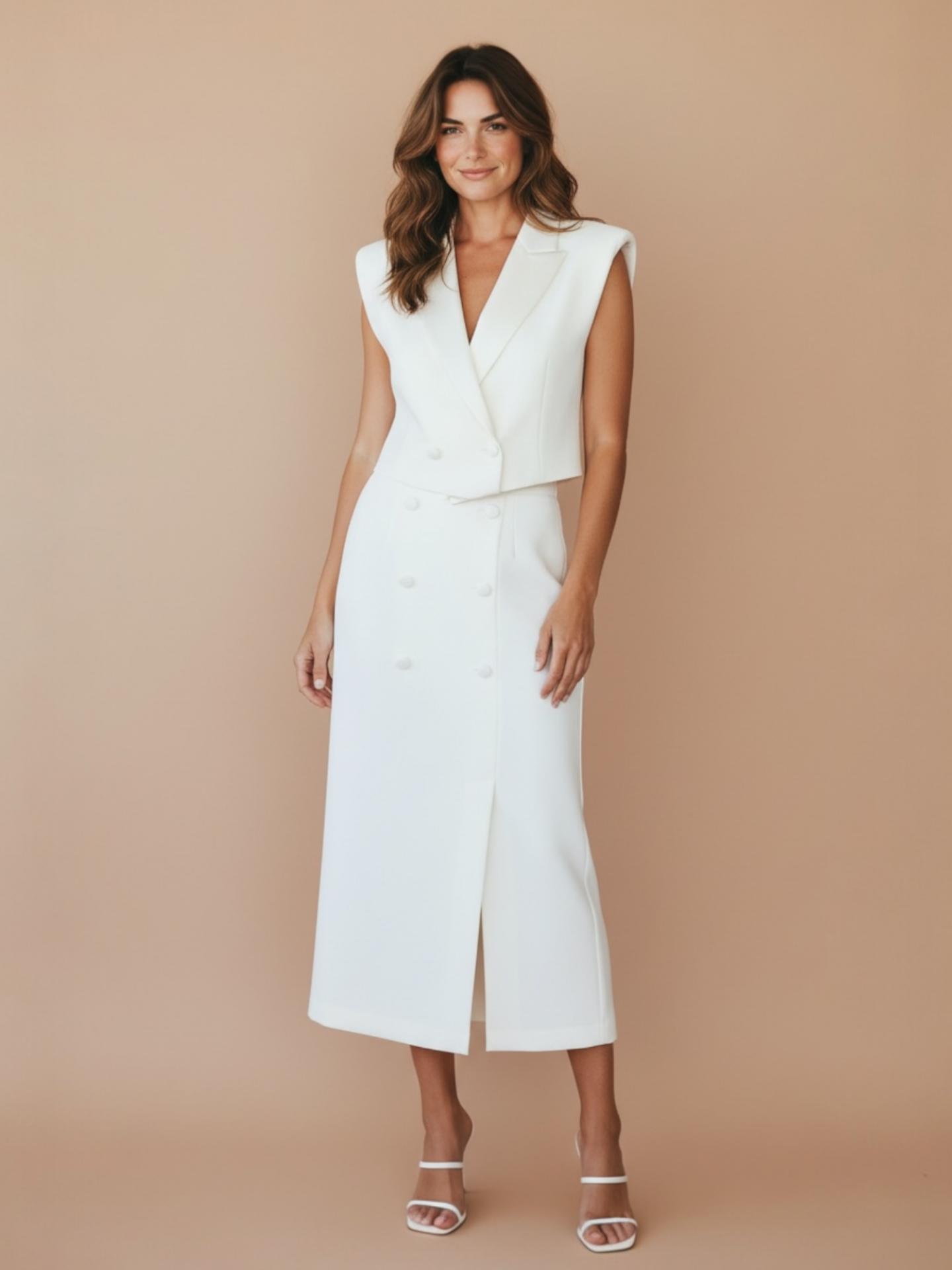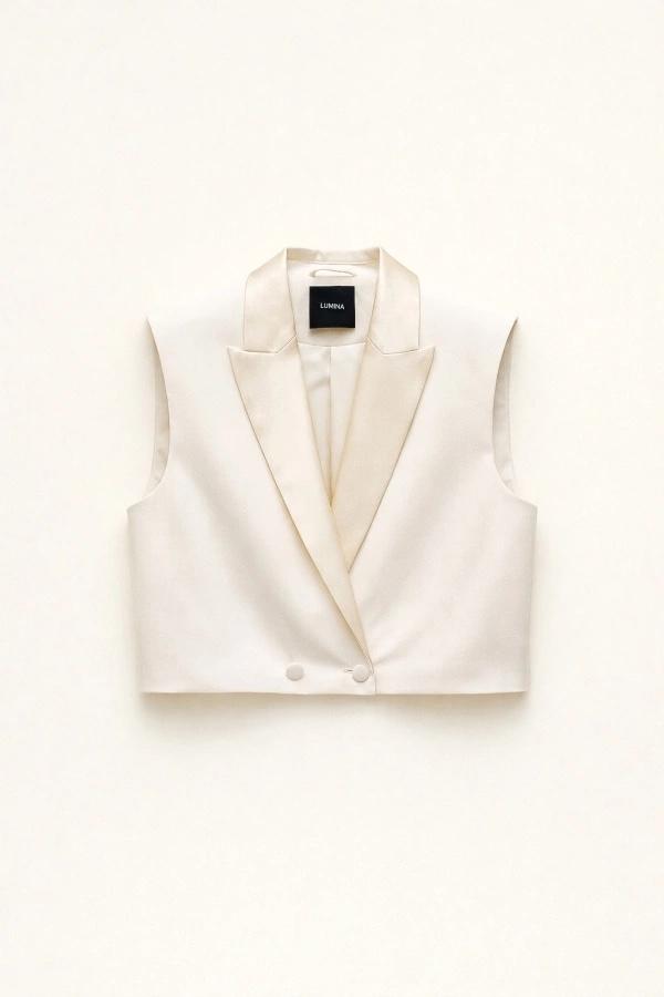 El chaleco LEOPOLD de nuestra maravillosa casa de firma Lumina está confeccionado con un maravilloso tejido efecto satén en contraste con las solapas. Lleva mini hombreras y dos botones delanteros.