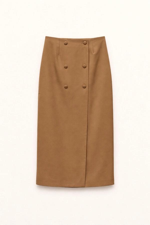 La falda KALA pertenece a nuestra maravillosa casa de firma Lumina. Viene confeccionado en corte midi recto con doble botonadura