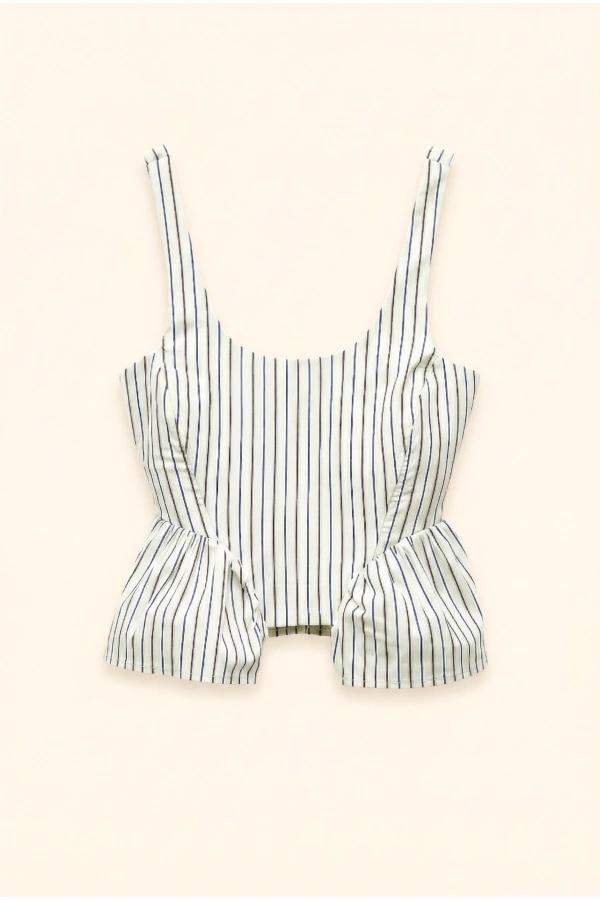 El top BIOMB Pertenece a nuestra maravillosa casa de la firma Lumina. Viene en corte entallado y pequeño. Tejido sedoso efecto denim .