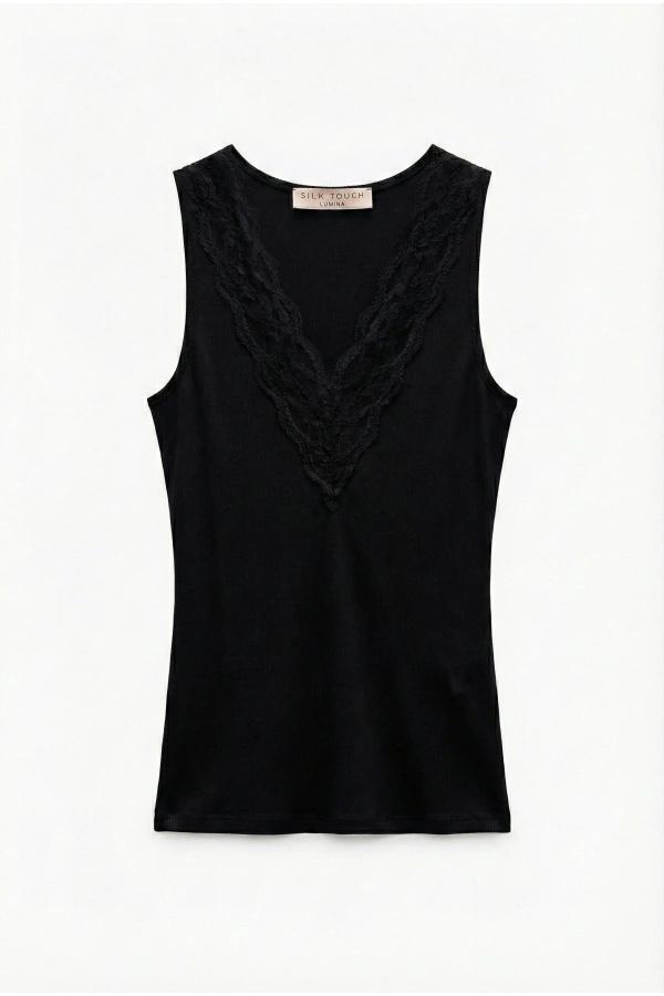 El top ENDIA de nuestra casa de firma Lumina viene en tejido suelto de algodón con escote de encaje