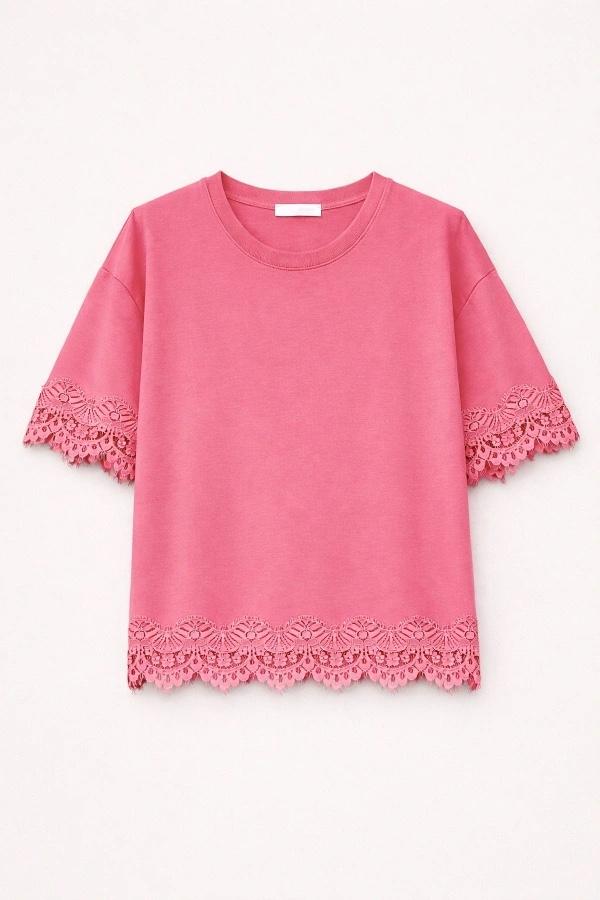 La camiseta IVONNE de nuestra casa de firma Lumina viene en tejido amplio de algodón con detalle de encaje del mismo tejido