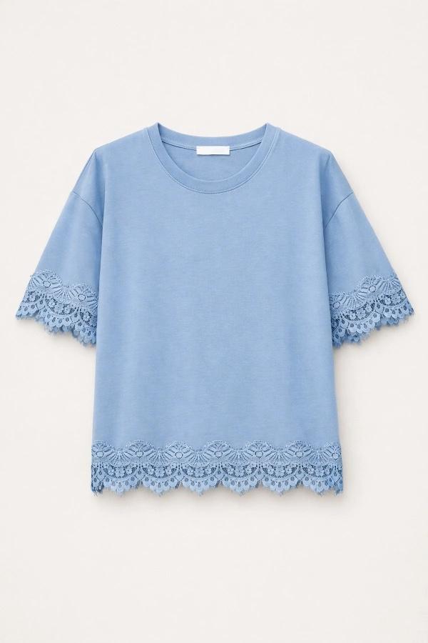 La camiseta IVONNE de nuestra casa de firma Lumina viene en tejido amplio de algodón con detalle de encaje del mismo tejido