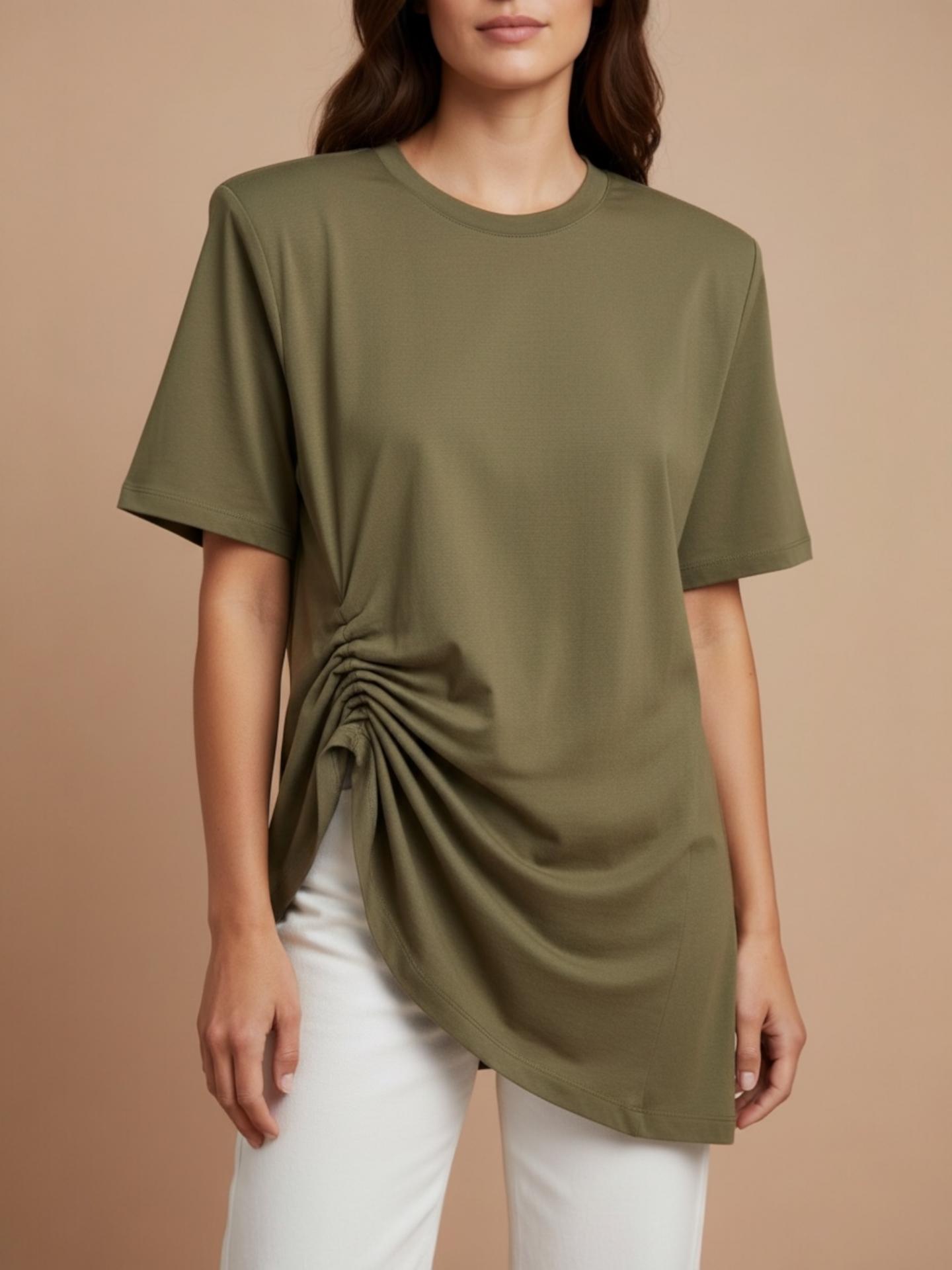 La camiseta ISABEL de nuestra casa de firma Lumina viene en corte asimétrico con un Gramaje de algodón de altísima, calidad y maxi hombreras.