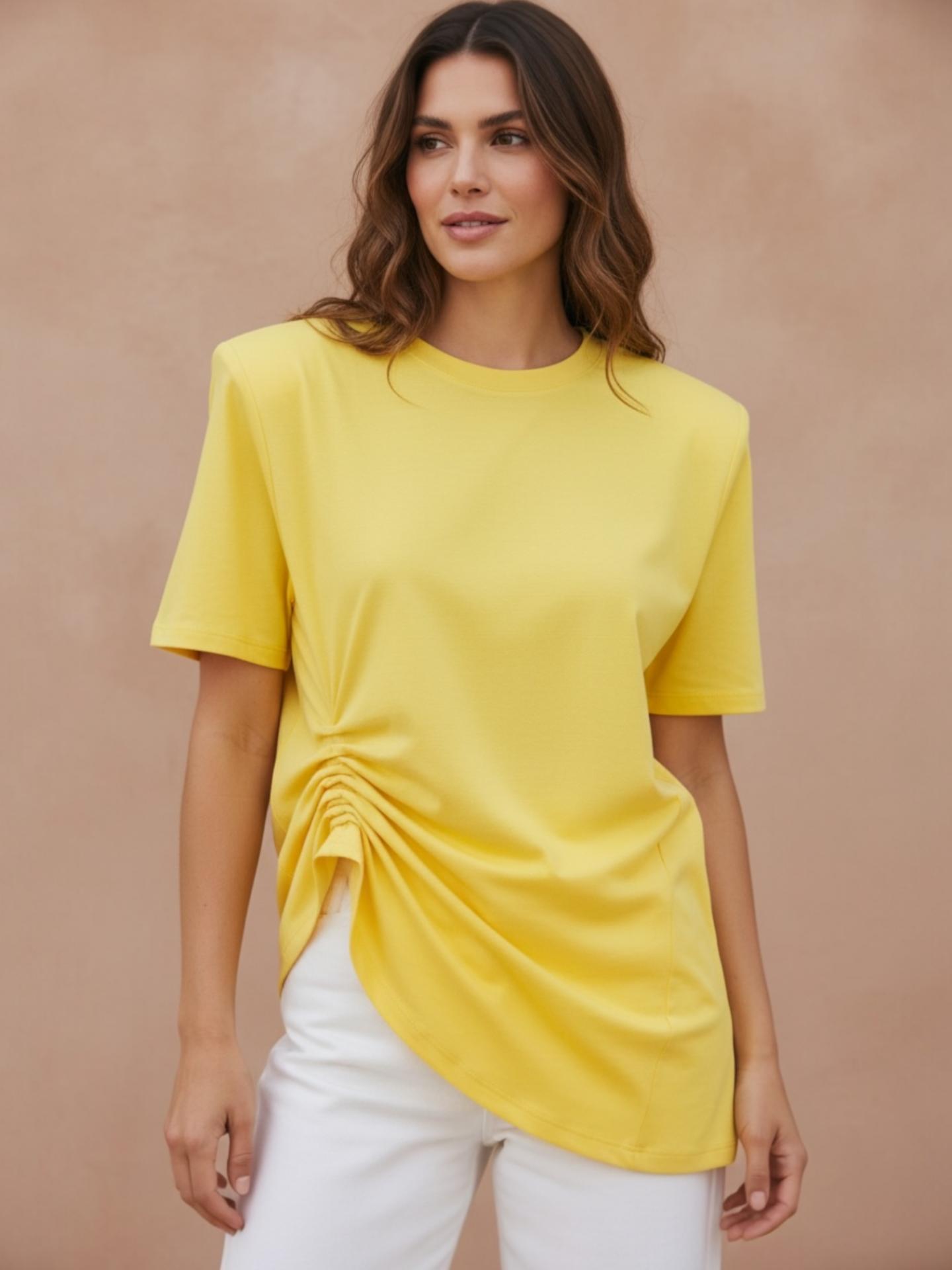 La camiseta ISABEL de nuestra casa de firma Lumina viene en corte asimétrico con un Gramaje de algodón de altísima, calidad y maxi hombreras.