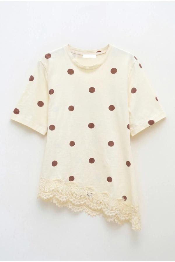 La camiseta LUXEM de nuestra casa de firma Lumina viene en corte asimétrico con bajo de encaje y ligeramente entallado en cintura.