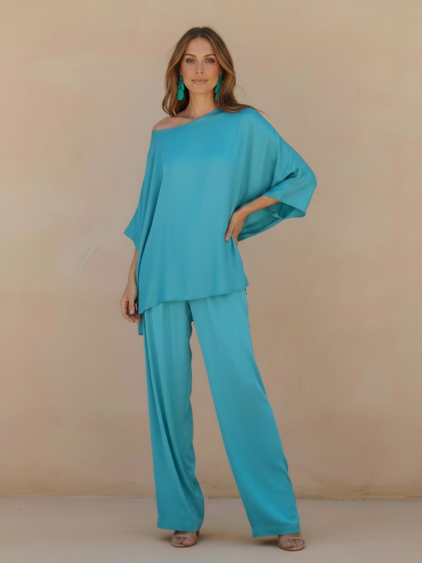 El conjunto LEWIS viene en tejido de seda con forro. Pantalón con caída y cintura elástica